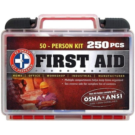 020424101138Be Smart Get Prepared 250 Piece First Aid Kit with ANSI Guidelines, 50 Person, 1.96 Pound