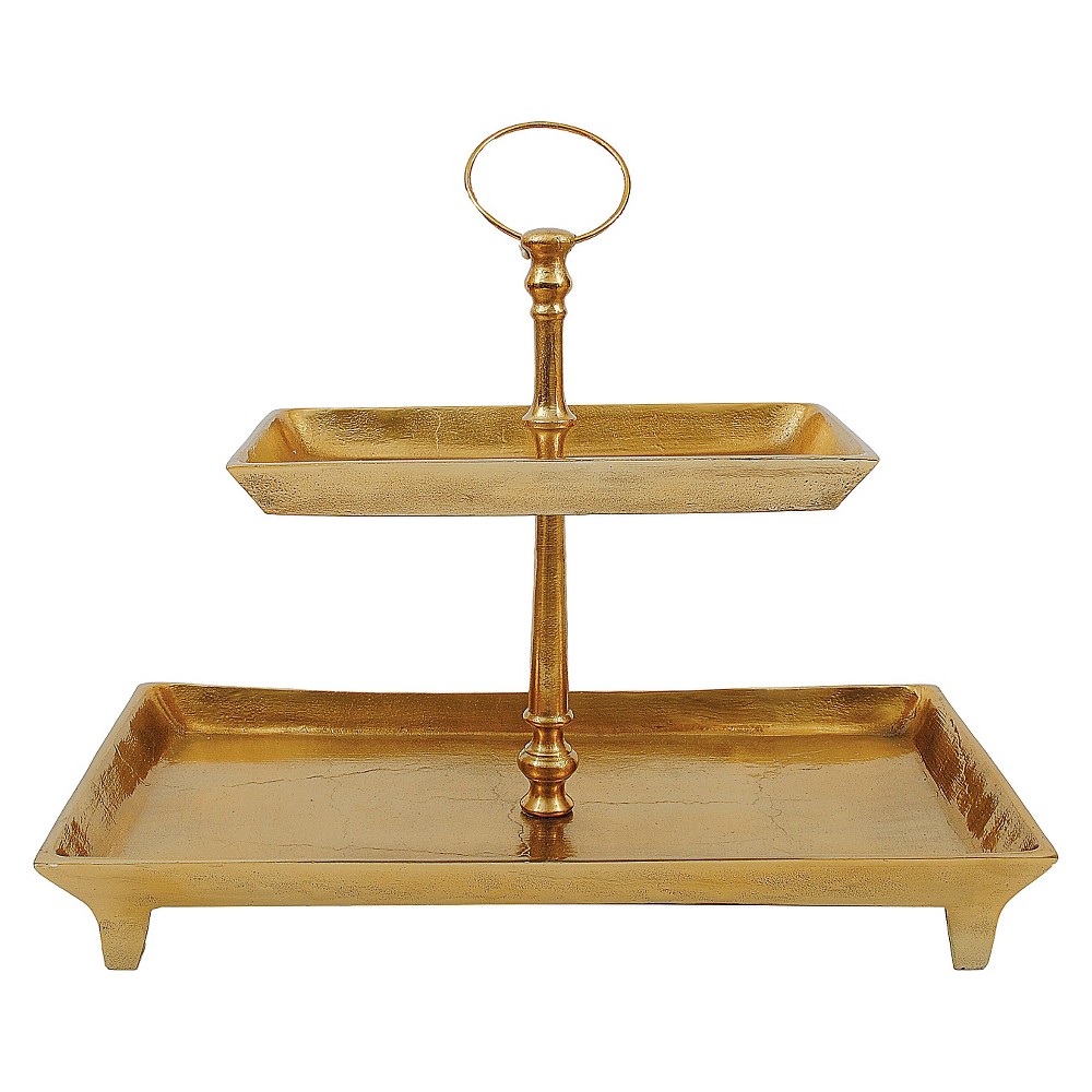 807472762319Aluminum 2-Tier Tray - Gold