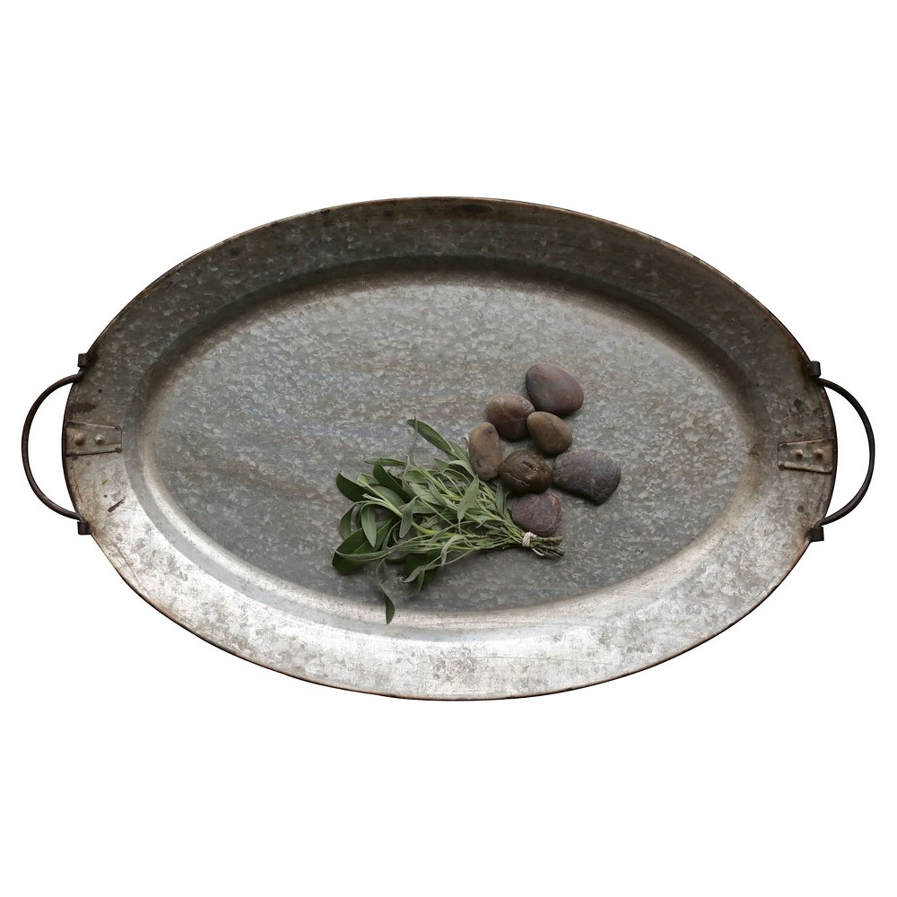 807472943411Galvanized Iron Serving Tray - Storied Home: Oval, Farmhouse Style, Decorative Use Only