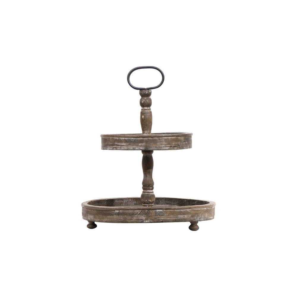 191009171478Storied Home 24.7" x 16.2" Decorative Wood 3-Tier Tray Natural - Whitewash Effect, Indoor Display