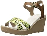 887350727661crocs Women's Leighii Anklestrap Graphic Wedge Sandal, Hazelnut/Gold, 9 M US