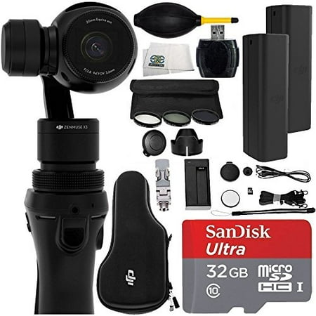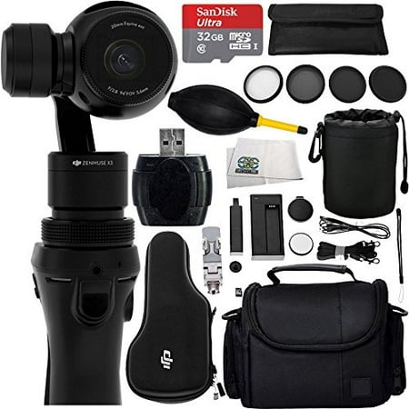 017496283725DJI Osmo Handheld 4K Camera and 3-Axis Gimbal 12PC Accessory Kit. Includes SanDisk Ultra 32GB microSDHC Memory Card + DJI Osmo Intelligent Battery + 5PC Filter Kit (UV-CPL-ND4-ND8 + Case) + MORE