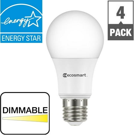 693690568570Ecosmart 60W Equivalent Soft White A19 Energy Star and Dimmable LED Light Bulb (4-Pack)
