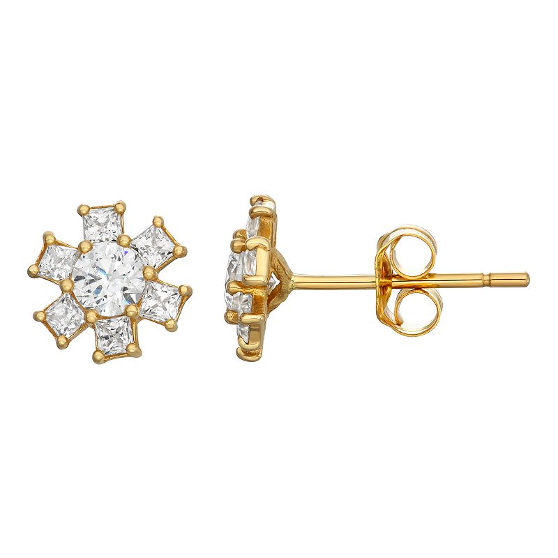Gold 'N' Ice 10k Gold Cubic Zirconia Flower Stud Earrings, Women's, Grey
