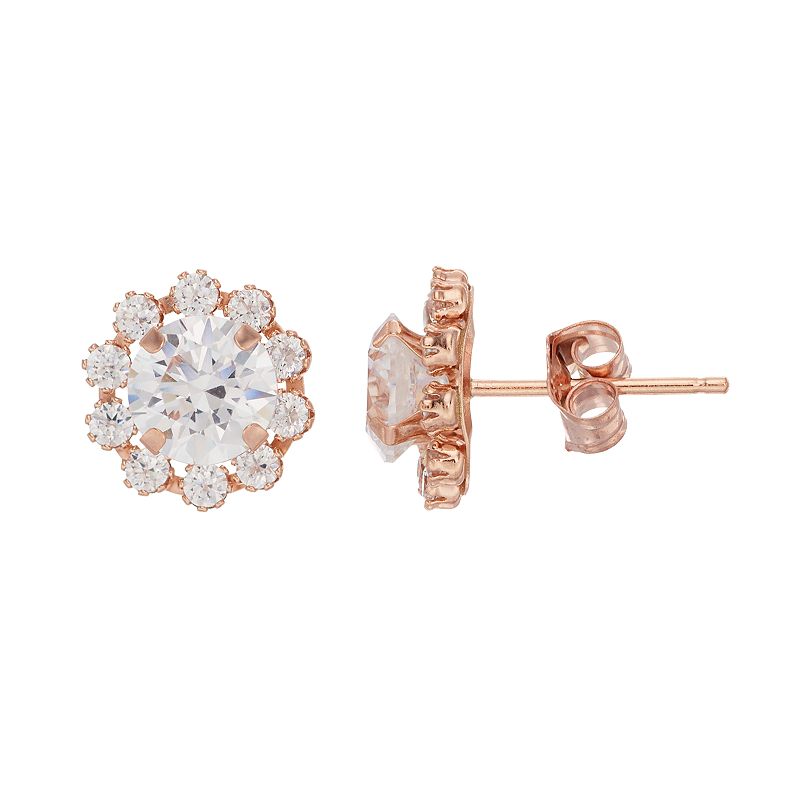 10k Rose Gold Cubic Zirconia Flower Stud Earrings, Women's, White