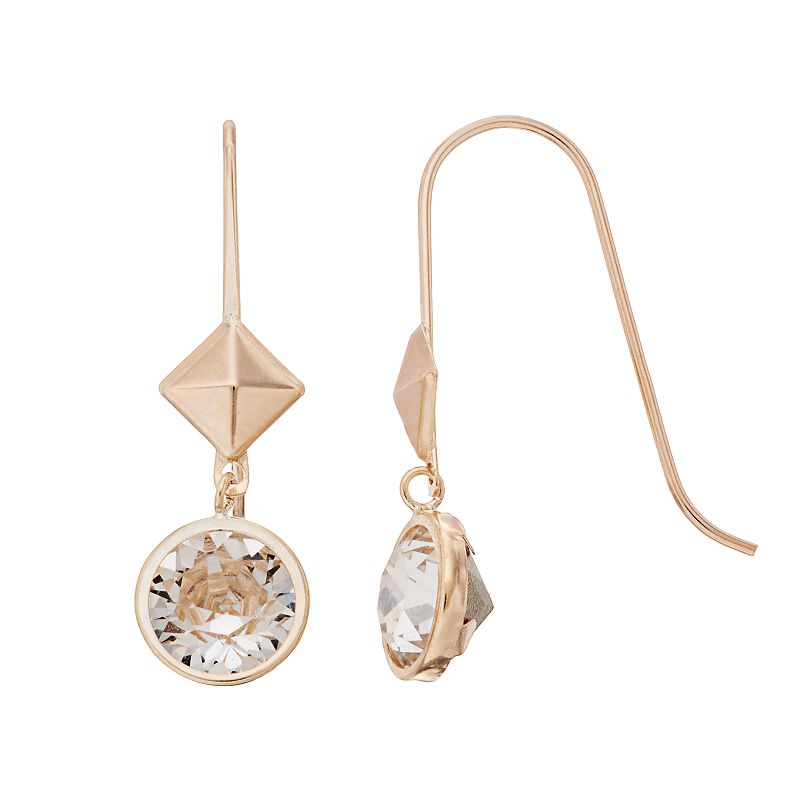 10k Gold Crystal Pyramid Drop Earrings, Women's, White