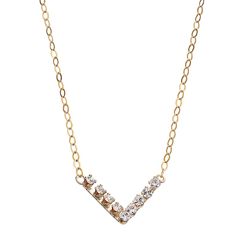 10k Gold Crystal Chevron Pendant, Women's, White