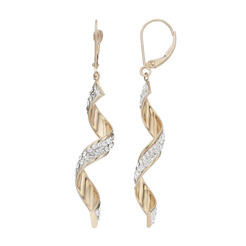 Gold 'N' Ice 10k Gold Crystal Swirl Drop Earrings, Women's, White