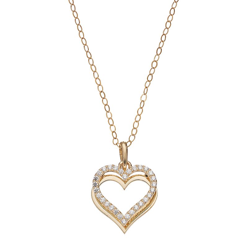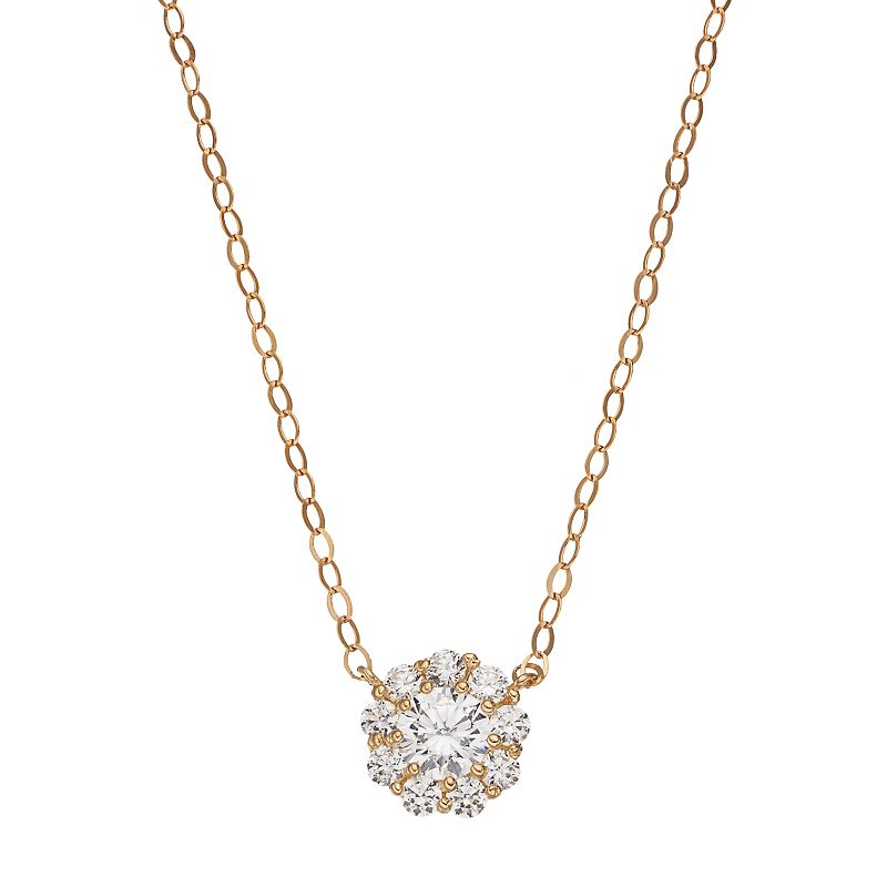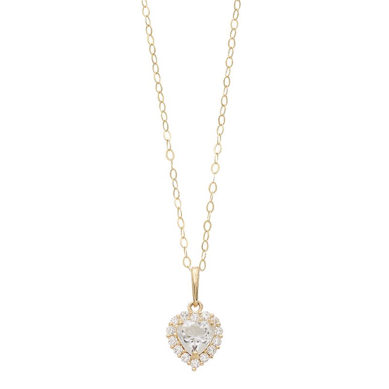 10k Gold Cubic Zirconia Halo Heart Pendant Necklace, Women's, Size: 18", White