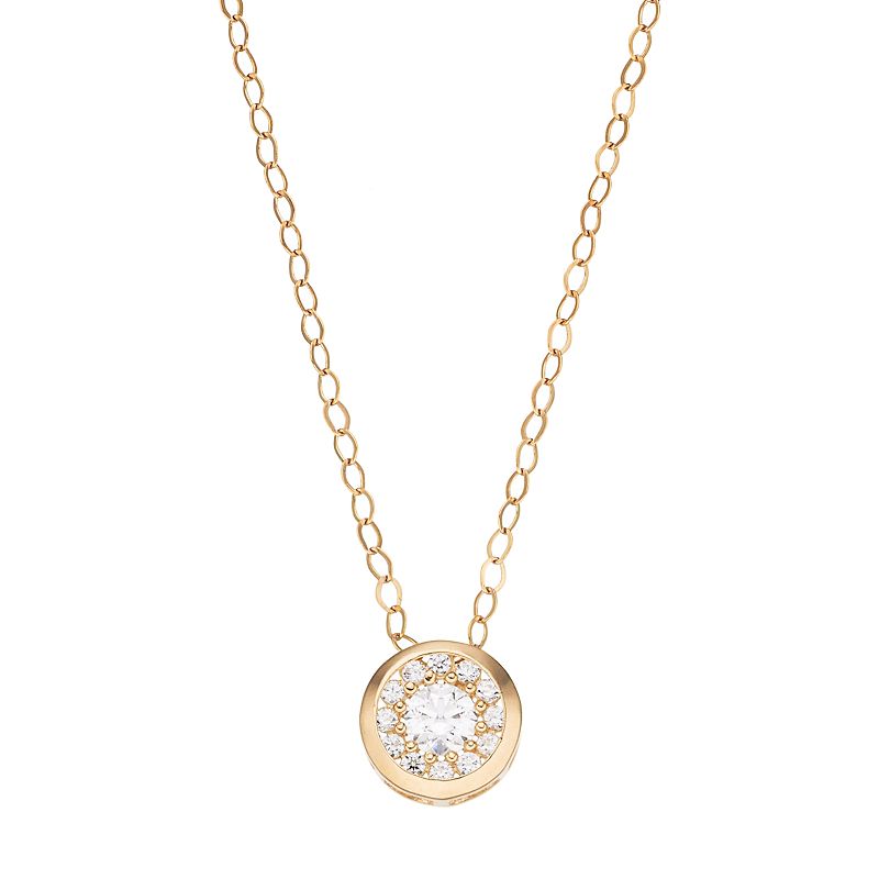 Gold 'N' Ice 10k Gold Cubic Zirconia Disc Pendant Necklace, Women's, Size: 18", White