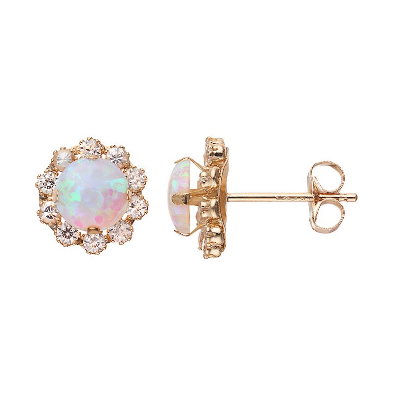 Gold 'N' Ice 10k Gold Lab-Created Blue Opal Flower Stud Earrings, Women's