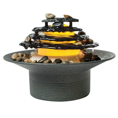 891234778663HoMedics WFL-SLVS Envirascape Silver Springs Illuminated Relaxation Fountain with Natural Stones