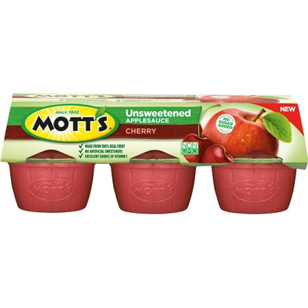 Mott's Unsweetened Cherry Applesauce, 3.9 Oz Cups, 6 Count (Pack of 12)