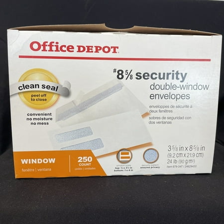 735854788995Office Depot Double-Window Envelopes (3 5/8in. x 8 5/8in.) Self-Adhesive 250