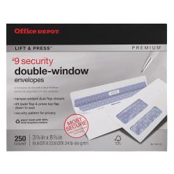 735854789008Office Depot Double-Window Envelopes #9 (3 7/8in. x 8 7/8in.) White Clean Seal(TM) Box of 250 77166