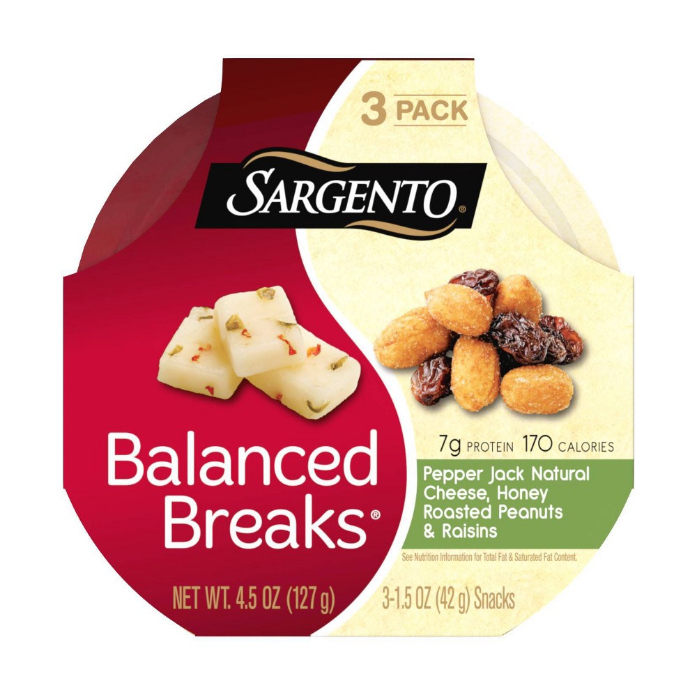 046100009437Sargento Balanced Breaks Pepper Jack Cheese, Honey Roasted Peanuts & Raisins - 3pk/1.5oz