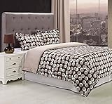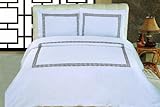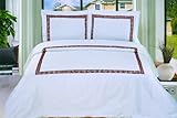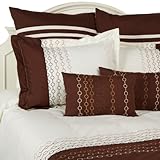 Serena 3-Piece Embroidered King Duvet Cover Set, White/Chocolate
