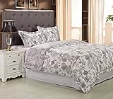 Serena 3-Piece Embroidered King Duvet Cover Set, White/Gray