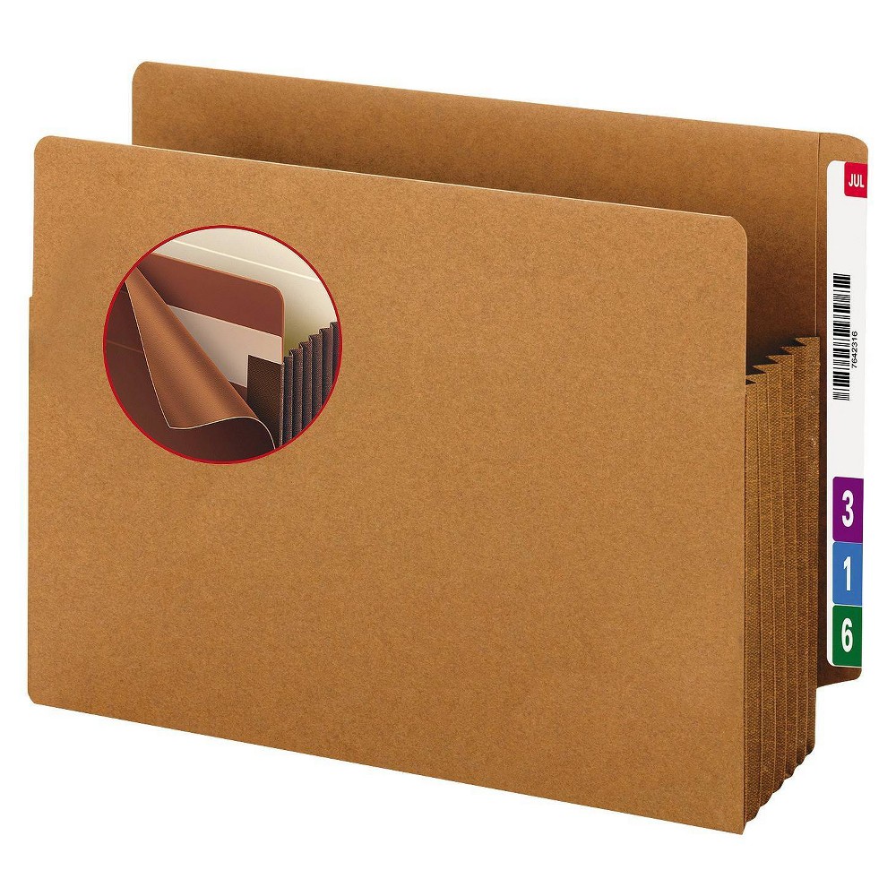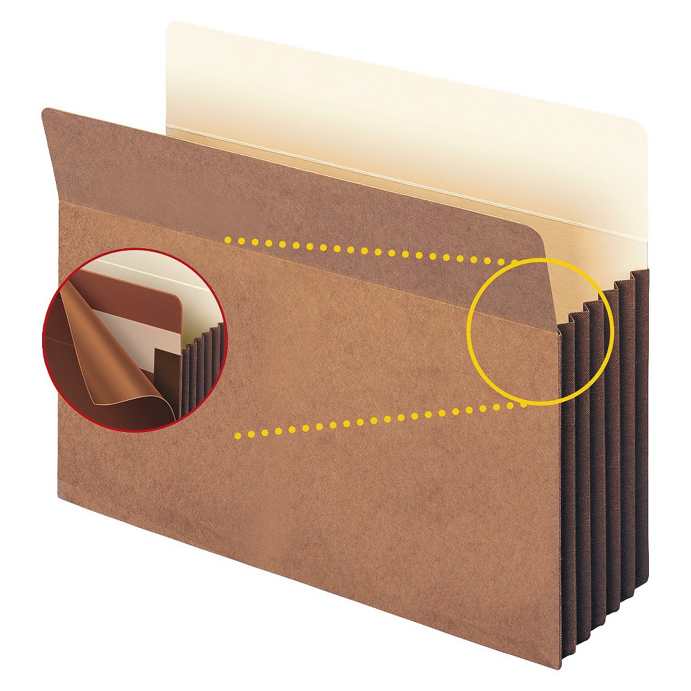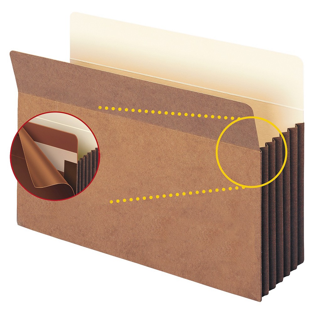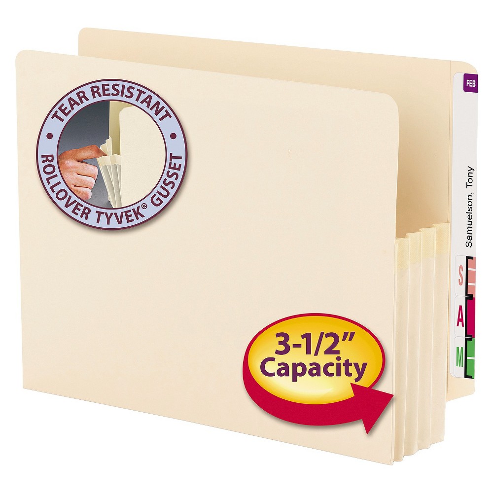 086486743907Smead 5 1/4" Accordion Expansion File Folder Pocket w/Tyvek, Straight, Large, Manila/Redrope, 10/Box