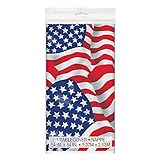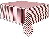 011179503001Unique Plastic Red Stripe Table Cover, 108" x 54"