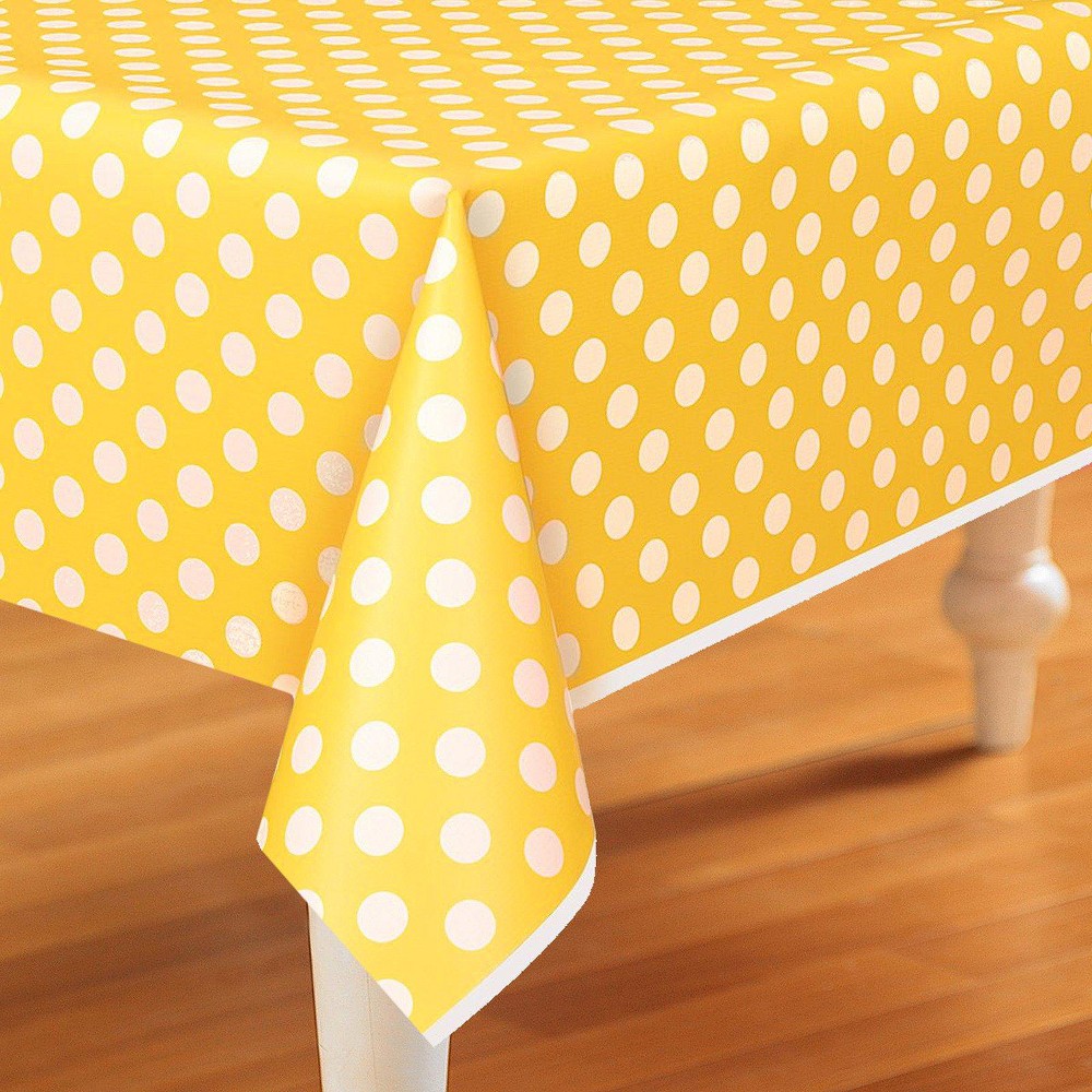 011179502639Disposable Tablecover with Dots - Yellow/White