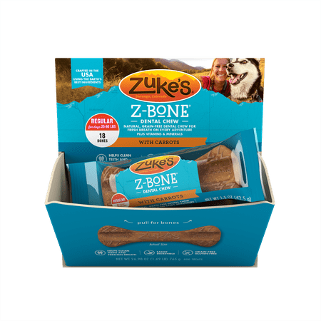 613423820263Zuke's Z-Bones Edible Grain-Free Dental Chews, Clean Carrot Crisp, Regular 1.5-Ounce, Individually Wrapped Bone